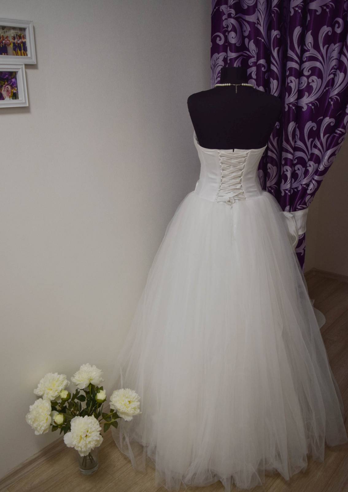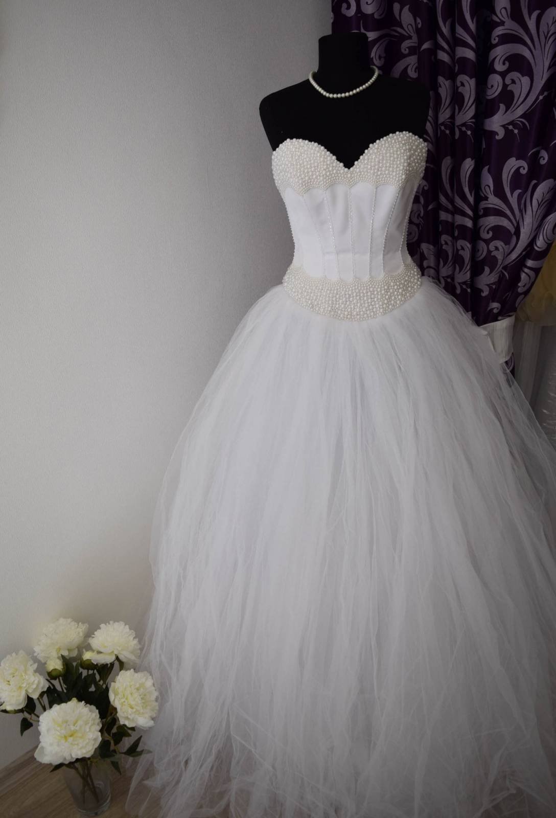 Девушки! Красивое, пышное платье белого цвета! Корсет украшен жемчугом, юбка пышная. Платье после салонной химчистки....