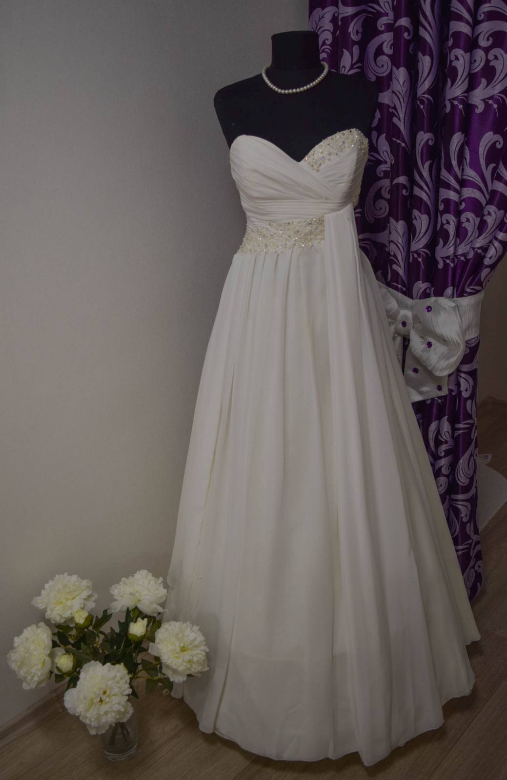 Цвет Айвори. Платье пошито из атласа, украшено кам...